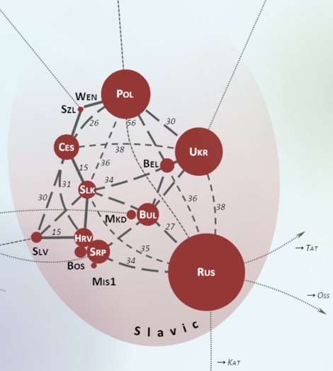 Ņemsim slāvu valodas: serbu, horvātu, bosniešu un melnkalniešu valodas ir Siāmas dvīņu valodu kvartets, un slovēņu valoda, vēl viena bijušās Dienvidslāvijas valoda, ir ārkārtīgi tuvas. Slovāku valoda atrodas pa vidu starp čehu un horvātu valodu. Maķedoniešu valoda gandrīz neatšķiras no bulgāru valodas. Baltkrievu valoda ir diezgan tuvu ukraiņu valodai. Krievu valoda atrodas nedaudz atsevišķi: tā ir vistuvāk bulgāru valodai, bet diezgan tālu no poļu valodas.