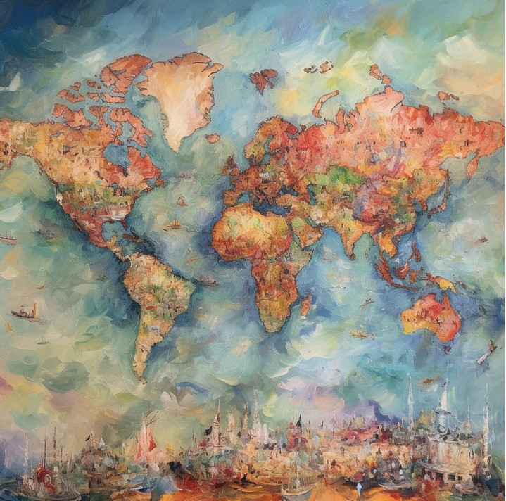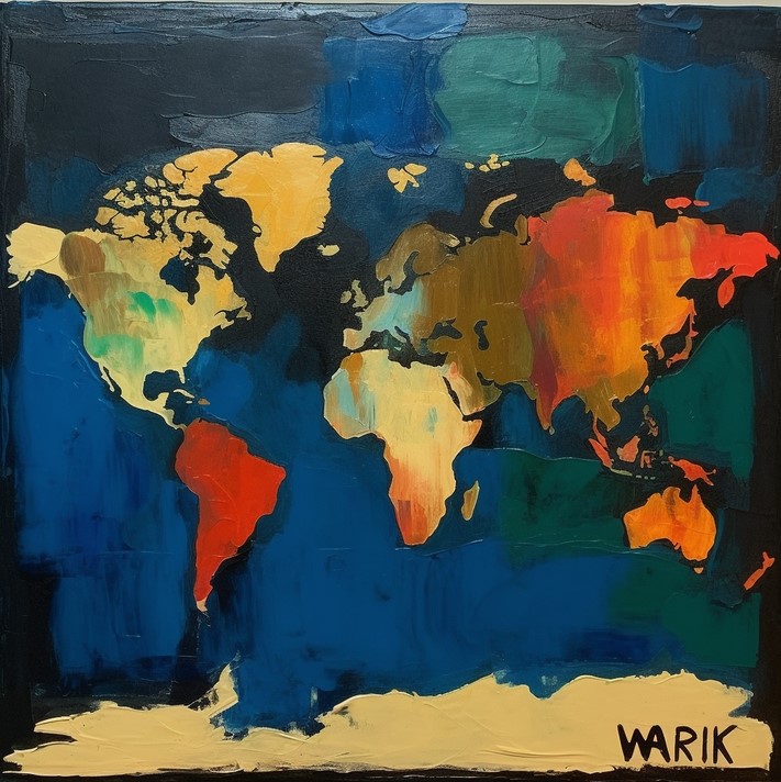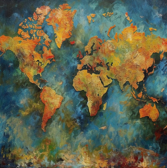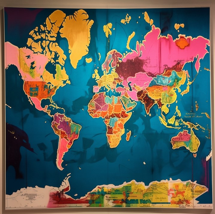 Portāls Brilliant Maps veica pasūtījumu mākslīgā intelekta attēlu rīkam Midjourney, izveidot pasaules karti kāda slavena mākslinieka stilā.