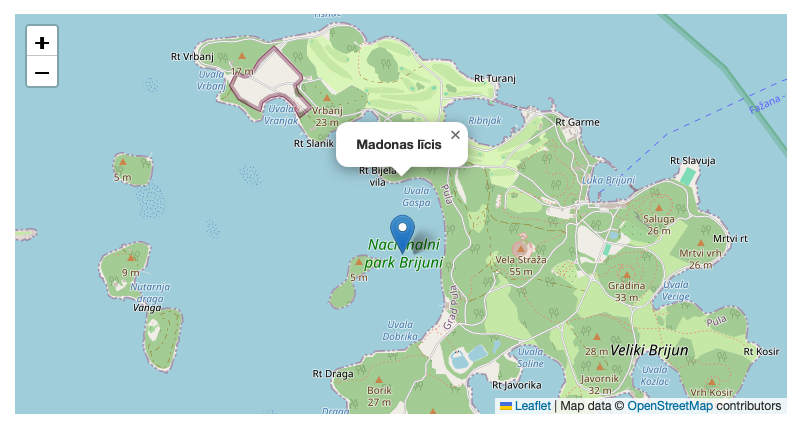 2. Madona ir līcis Adrijas jūrā pie Horvātijas salas Veli Brijuna. Šī sala kopā ar vēl citām apkārtnes salām ietilpst Brijunu Nacionālajā parkā. Uz salas atrodas kūrorta komplekss. Salā ir subtropisks mitrs klimats, aug ozoli, olīvkoki un priedes. Īpašs salas lepnums ir 1 300 – 1 600 gadus vecs olīvkoks.