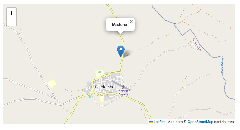 Madonas ciems atrodas Kalahari smiltājos aptuveni 1 080 virs jūras līmeņa. Ciemu apdzīvo ndebele etniskā grupa, kuri galvenokārt nodarbojas ar lauksaimniecību. Tā kā augsne nav pārāk auglīga, tad pārsvarā tiek audzēti mājlopi. Daļa iedzīvotāju dodas peļņā uz Dienvidāfrikas zelta raktuvēm.